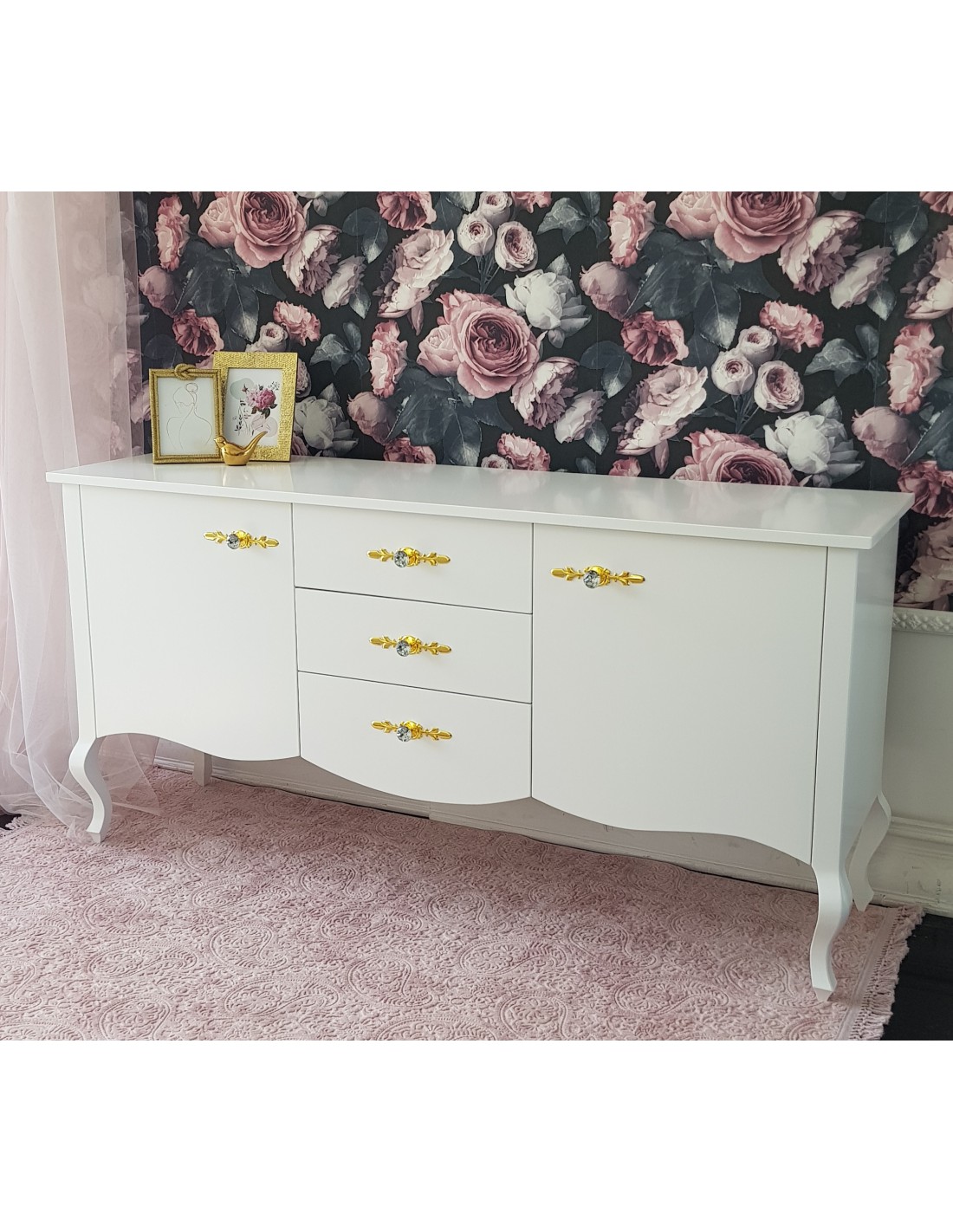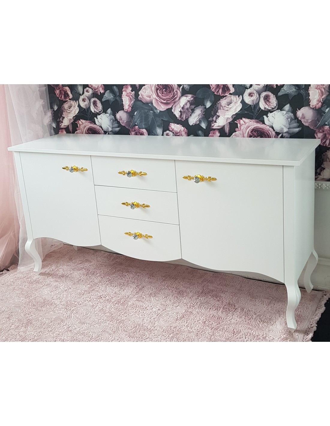 Komoda Ludwik 3 szuflady oraz dwoje drzwiczek biała złote brylanty