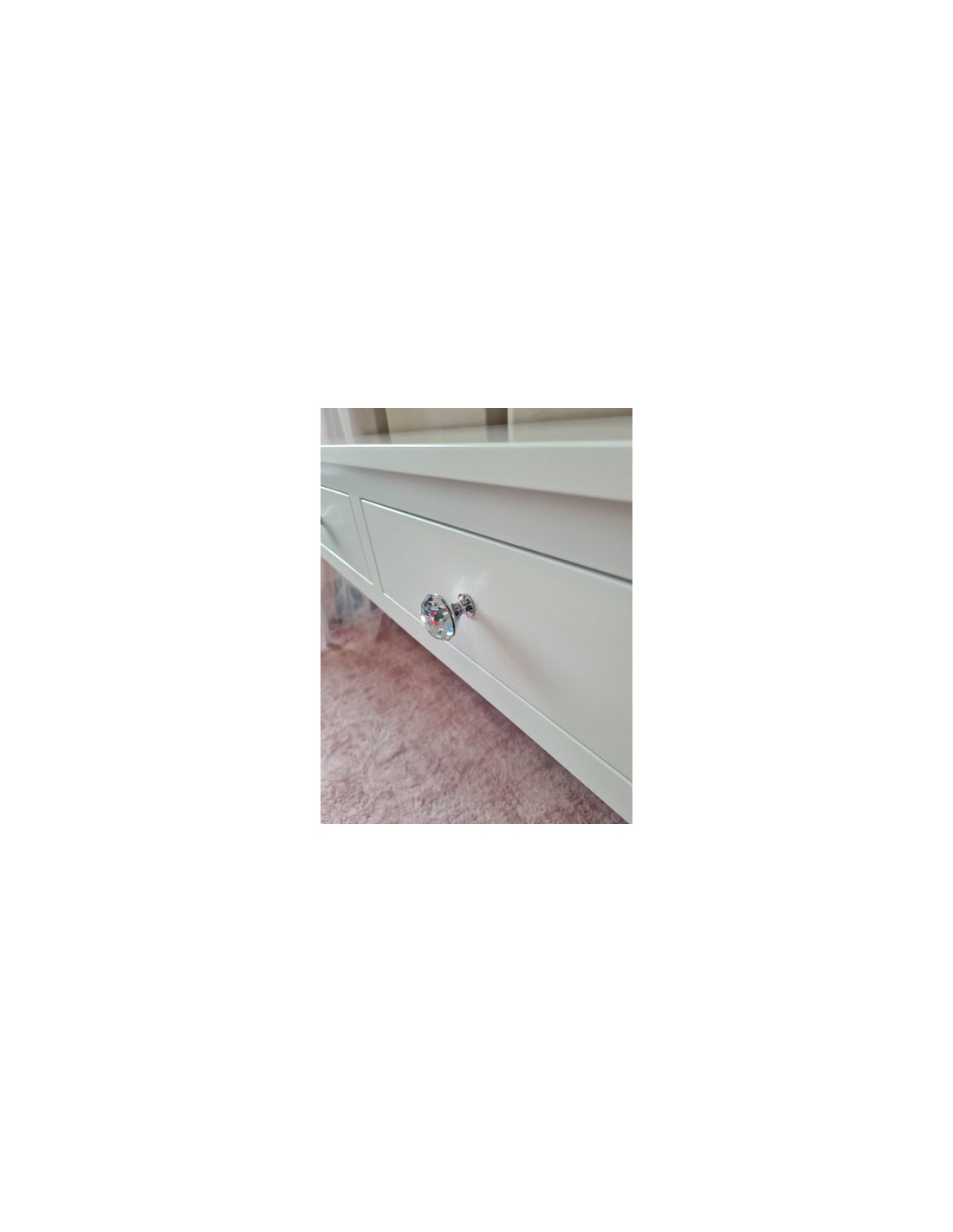 Kryształowe uchwyty w kształcie dużych brylantów o wysokości 4cm i średnicy 4,5cm co nadają meblowi jeszcze większego ekskluzywnego wyglądu.
