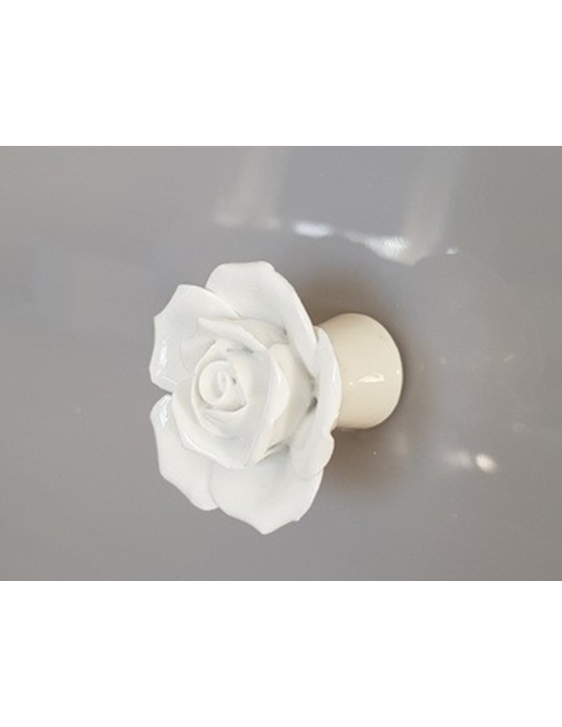 Szuflady wykończone uroczymi porcelanowymi uchwytami w kształcie róż.